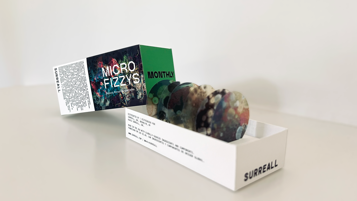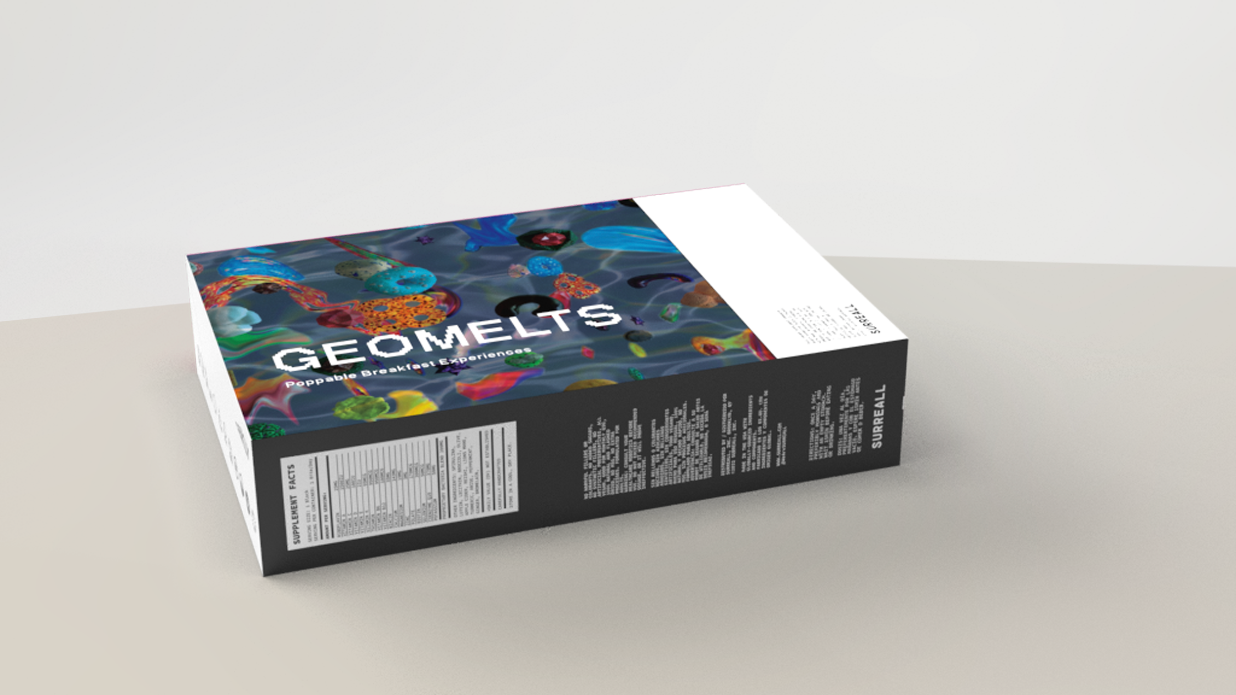Surreall is a food experience collective that aims to address the psycholsocial-physiological challenges of 2044 by delivering complex nutrition through novel mushroom-printed substrates. Surreall products incorporate the latest advances in food science, psychopharmacology and industrial production techniques to reclaim the joy and beauty of food in an age of scarcity and rationing. Using accelerated blooming methods, Surreall creates more complex and beautiful substrata that improve nutrition by exciting and enticing the senses. Using advanced psychopharmacology, Surreall provides relief from the anxiety and existential dread that have become the hallmark of twenty-first century life.